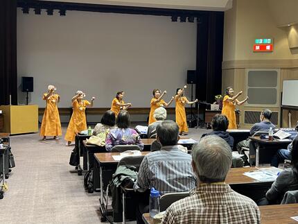 SKYサーク ル(フラ、ウクレレ)の演奏と踊りで、会場は一気にハワイ気分となり、参加の皆様からは、「オンライン などで、現実感があって良かった。アジア・台湾などの企画も楽しみにしています」など感想をいただきました。 ハワイ旅行時の思い出の記念写真を持参した方とHISスタッフとの会話も弾み、リアルのハワイ旅行を 考える方への案内などで、期待も膨れる時間となりました。作成:鈴木 健