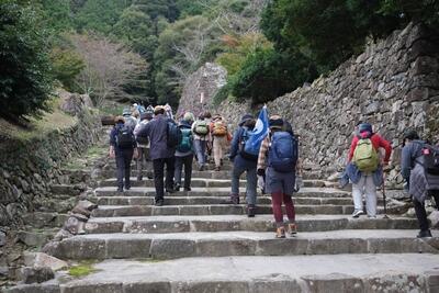 山の高さは198mと低山でしたが石段の大手道は段差があり苦戦する方もありましたが壮大なスケールを感じながら全員が登りきることができました。