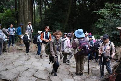 京都近郊の山を歩くシリーズ・初級コースの第2回目は、織田信長が天下統一の拠点として築いた山城・安土山へ53人が登ってきました。