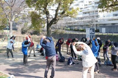 とても良い天気で温かく、軽登山にピッタリな日でしたが、六甲山登山の中で王道コースとされる芦屋川から最高峰を経て有馬温泉に下りる行程で、これまでSKYで実施したトレイルの中で最もハードな内容となり、途中、足がつる方も出たものの、全員無事、下山できました。