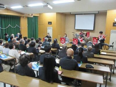 今回はいつものような教室内でのサロンではなく、視聴覚室でブラスバンド部の皆さんによる「クリスマスコンサート」を開催。この時期にぴったりのクリスマスソング等数曲演奏を聴きました。