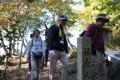 当日は雲一つない秋晴れで、紅葉も所々に色づき申し分のない登山日和に加え、目前に広がる琵琶湖と伊吹山の眺めは真に絶景で、参加者は大満足の一日となりました。